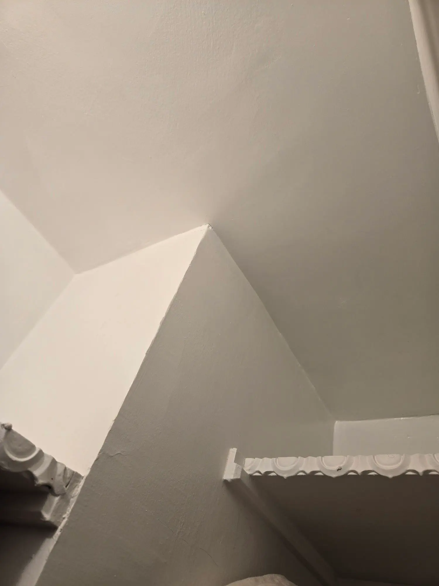 After repairing the plaster, a fresh coat of paint did wonders in uplifting the space. It’s amazing how much a well-finished ceiling can elevate a room’s ambiance. We took great care to achieve a smooth, seamless finish, addressing both aesthetic needs and functional improvements.